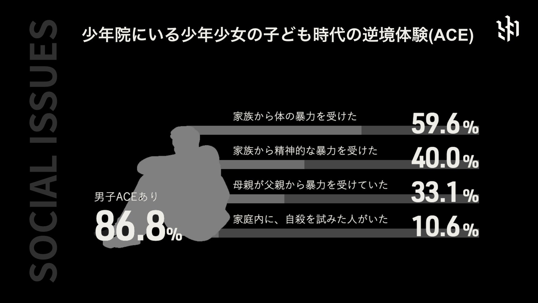 毎年1,000人を超える10代の若者が少年院に入ります。その約9割に虐待などの子ども時代の逆境体験があります。罪を犯した若者のほとんどは、そこにいたるまでに心と体に傷を負ってきた子たちなんです。