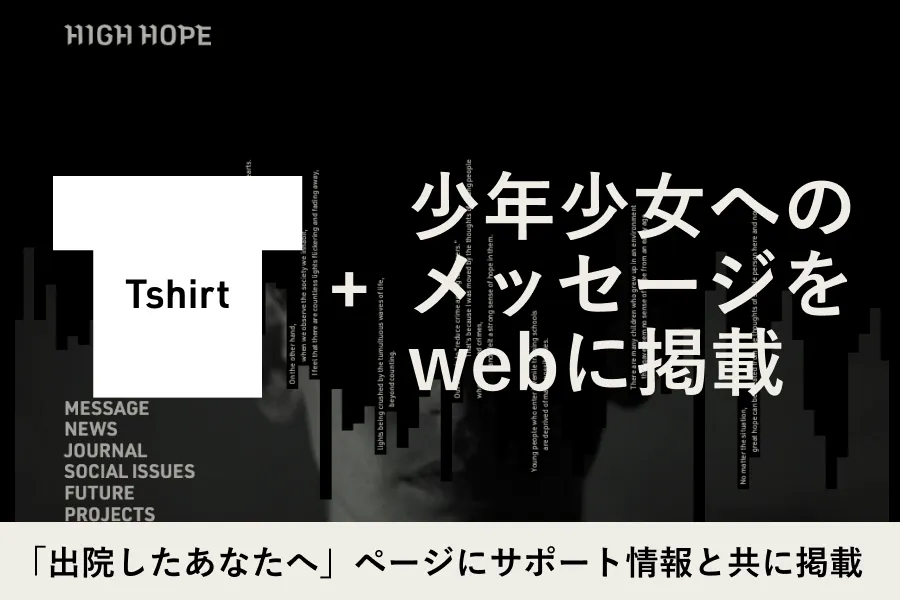 刑務所の見学やイベントは都合が合わないという方にも、HIGH HOPEオリジナルTシャツを着ていただきたい。そして何より皆さんのあたたかい応援の声を、少年少女たちに伝えたい。