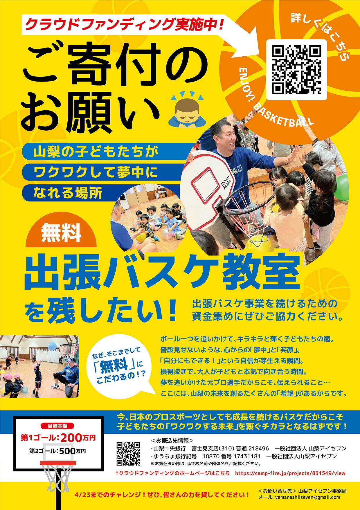 【山梨県の無料出張バスケットボール事業「アイセブンキャンバス」が活動継続に向けてクラウドファンディングに挑戦】