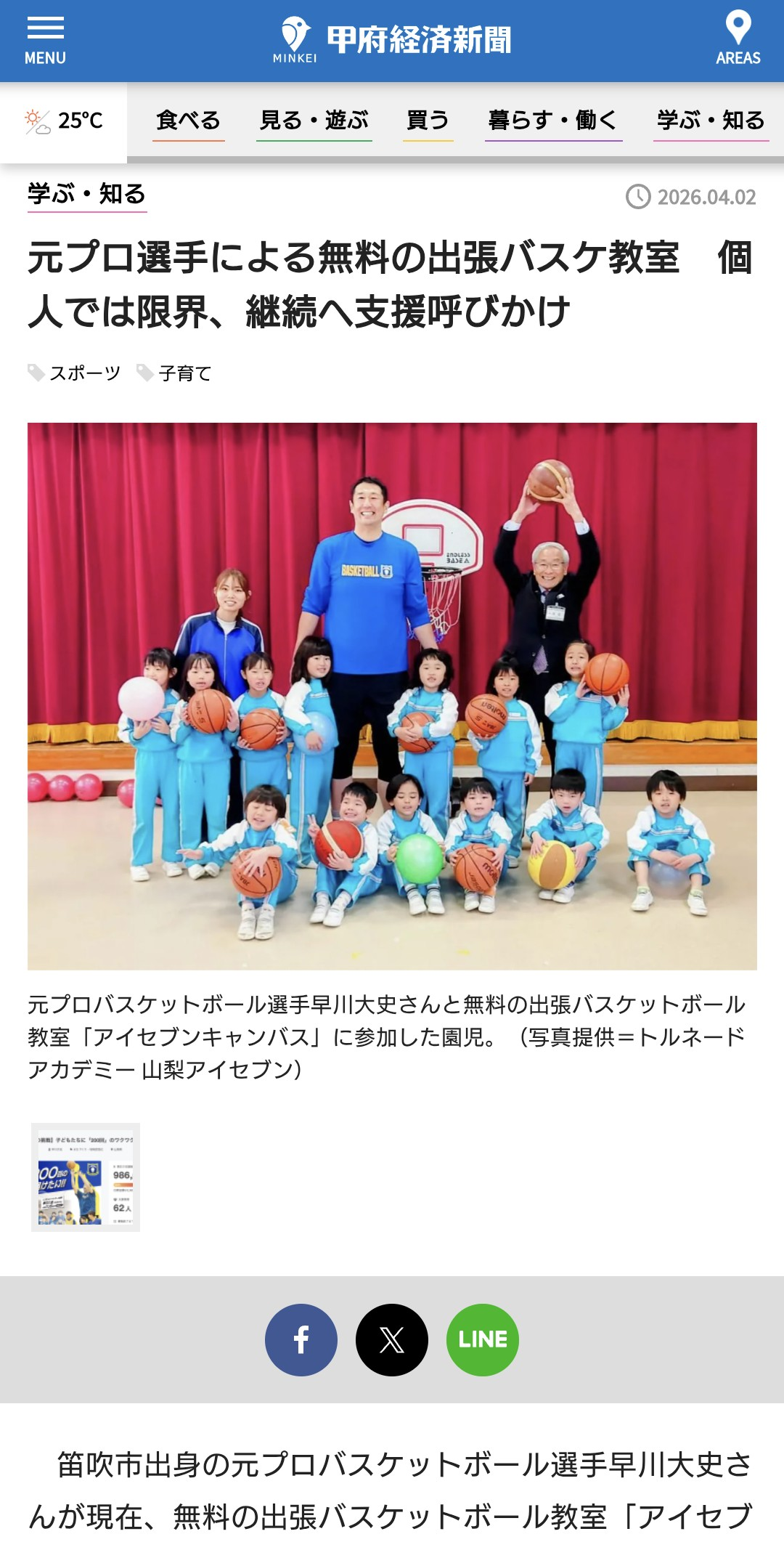 2026年4月2日(木)甲府経済新聞とYahooニュースに記事を掲載していただきました。