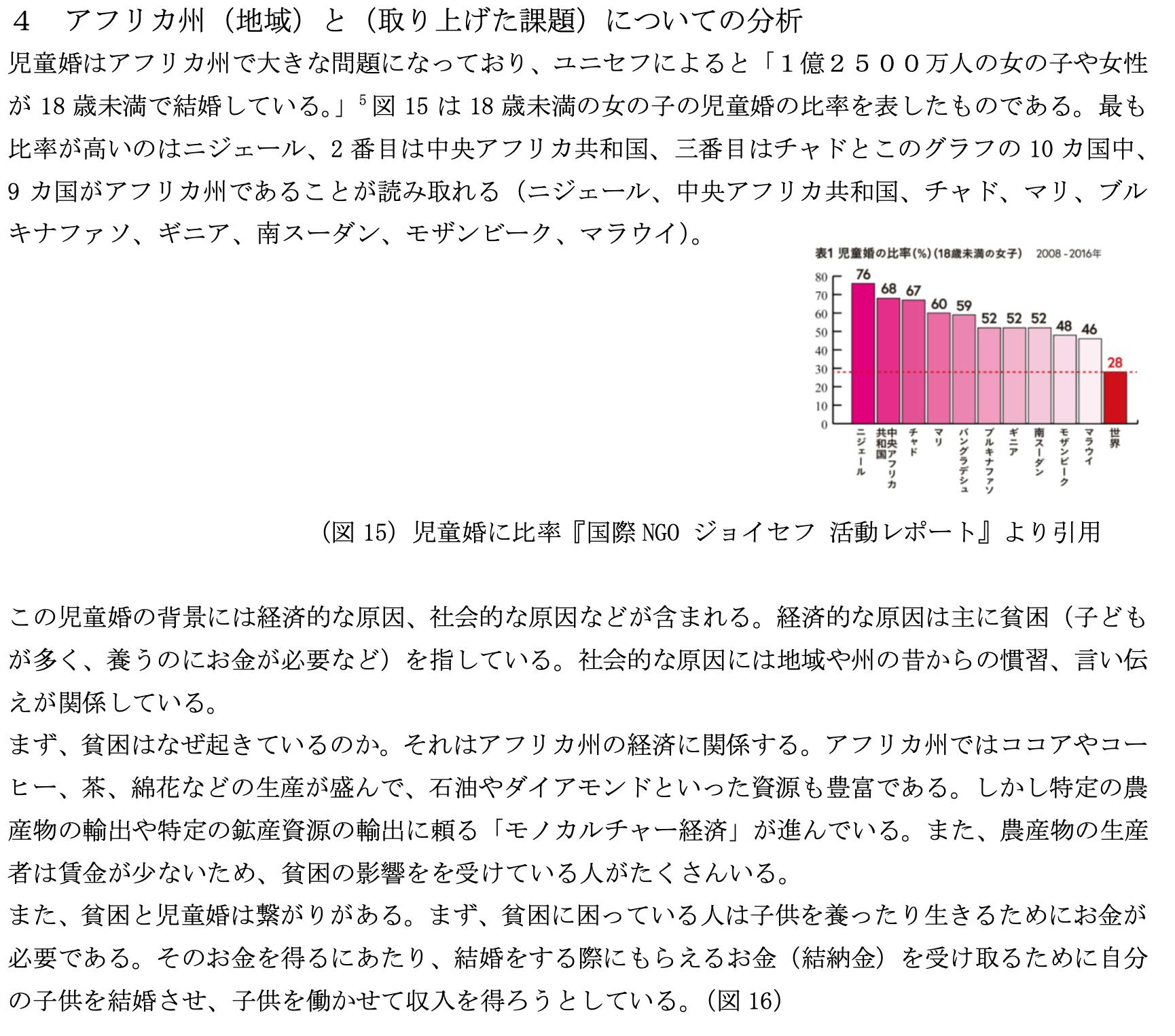 どことなく興味が湧いた私は、そのチラシをきっかけに、社会科の夏休み課題として「児童婚」をテーマにレポートを書くことにしました。調査を進めるにつれ、自分と同い年、あるいはそれよりも幼い子どもたちが、児童婚という形で自由を奪われている現実を知りました。そして、誰もが生まれながらに持っているはずの「教育を受ける権利」が、当然のように尊重されていないことに、酷くショックを受けました。