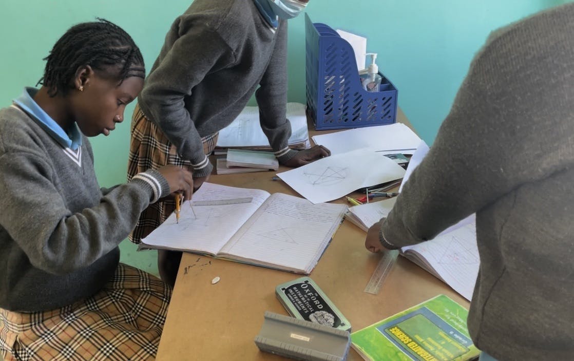中学数学の教科書の内容が書き写されたCORNERSTONE OF HOPE中高等学校(ザンビア)のホワイトボード