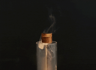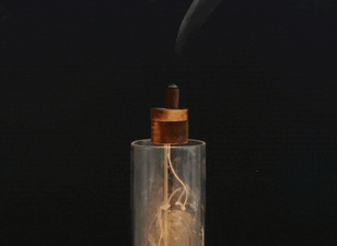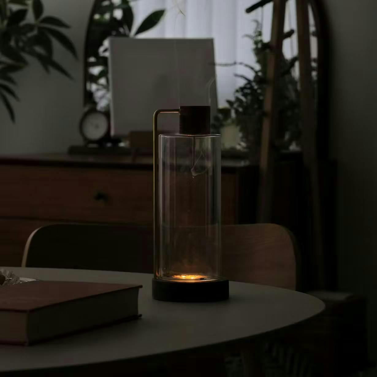 ガラスの中を煙が揺らめく様子を下からライトで照らすと、煙の動きの美しさ、繊細さに見とれてしまいます。