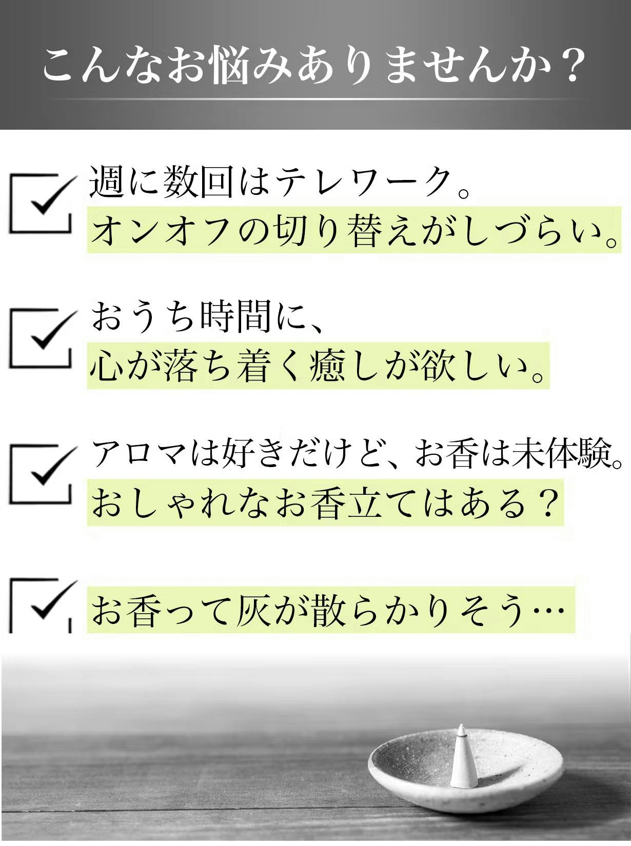 今日は週一のテレワーク。集中が切れがちな午後は、インセンスで集中力を高めてやる気をアップ!