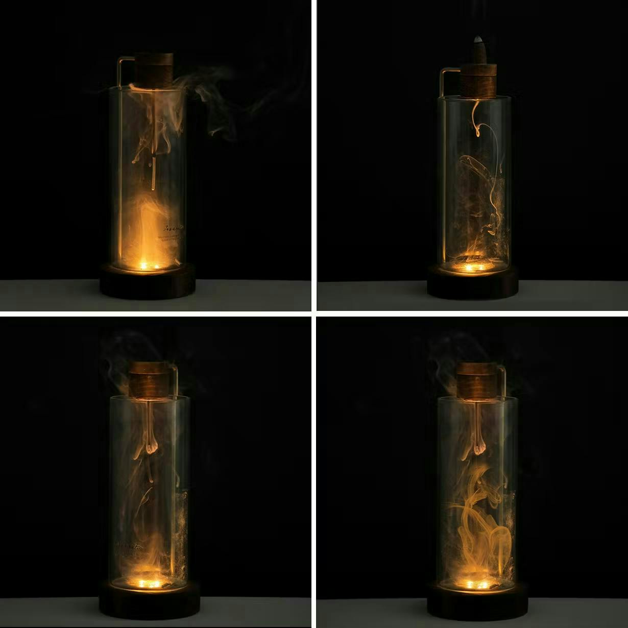 【インセンスホルダー オールインワン 】は、その煙をあえてガラスの中に入れて、鑑賞できる仕組みになっています。