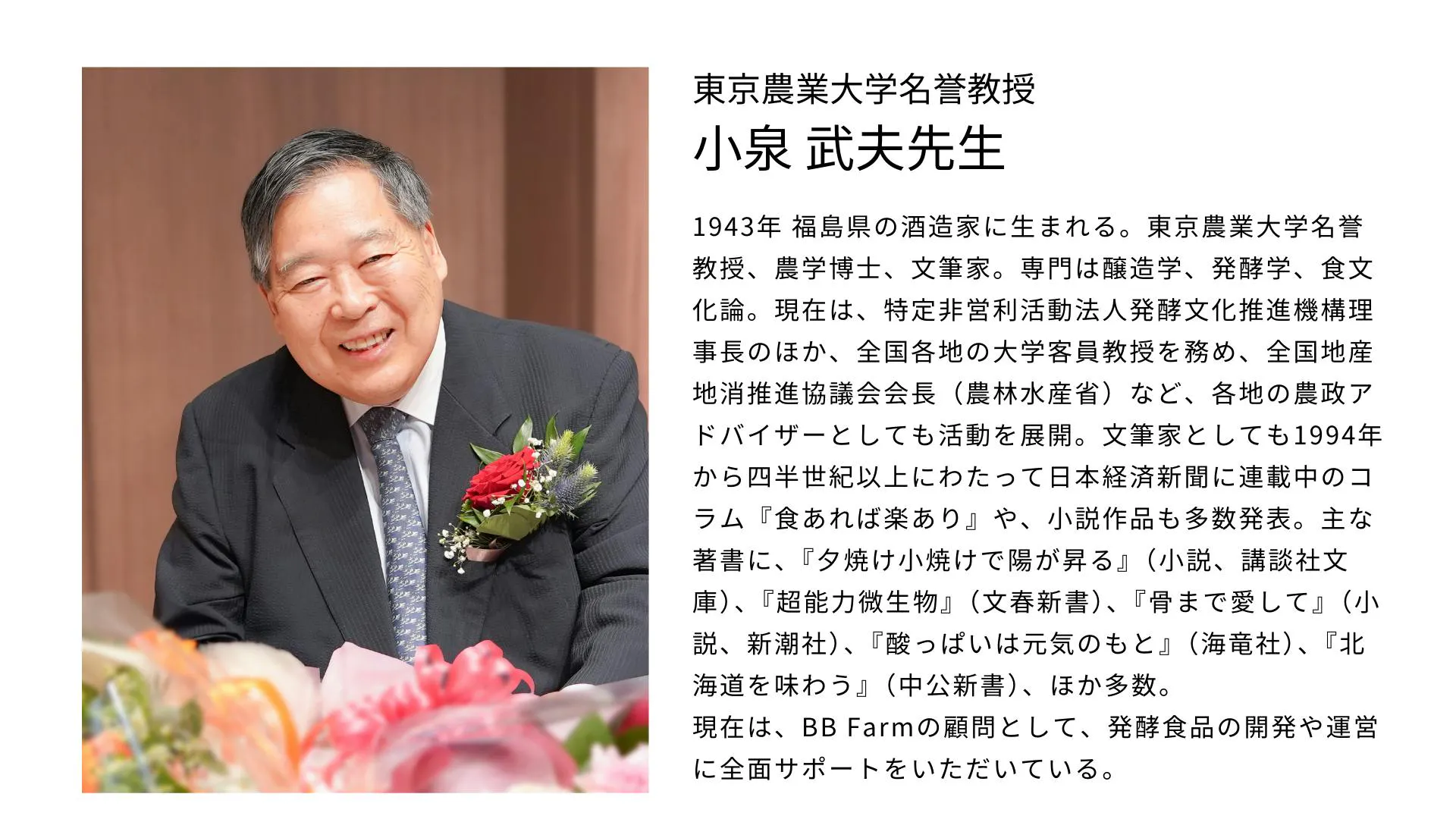 また最近ですと、BB Farmの顧問でもある東京農業大学名誉教授、小泉武夫先生のご発案で「収穫祭」を行いました。