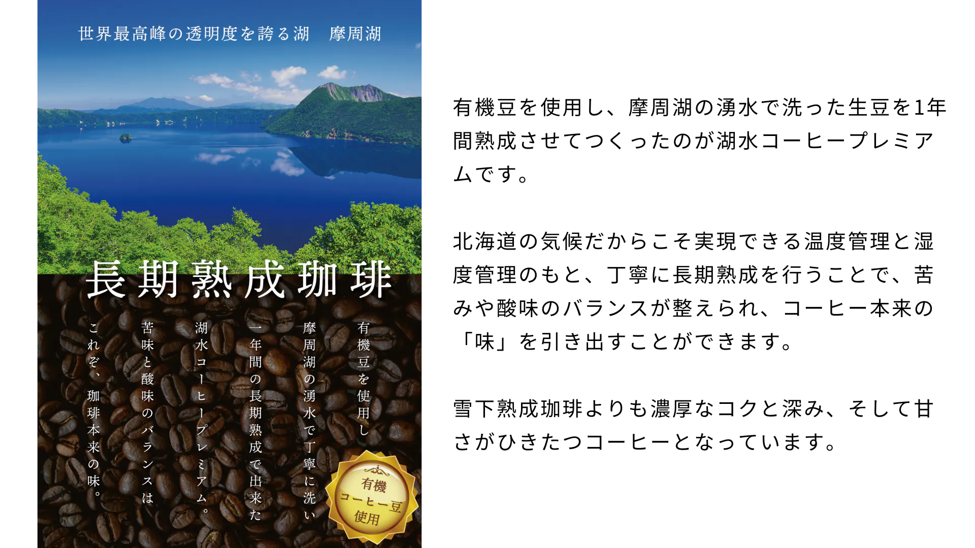 着実に形作られているこのプロジェクトですが、今回の挑戦は、現在販売中の湖水コーヒーと呼ばれる、摩周湖の水から生み出される特別なコーヒーのシリーズ化です。