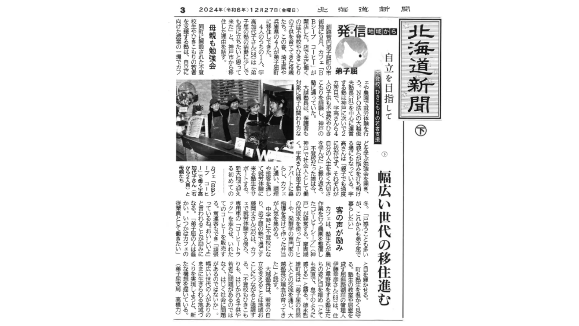 私たちの活動はだんだんと広まっており、北海道新聞にも3日間連載記事として掲載されました。