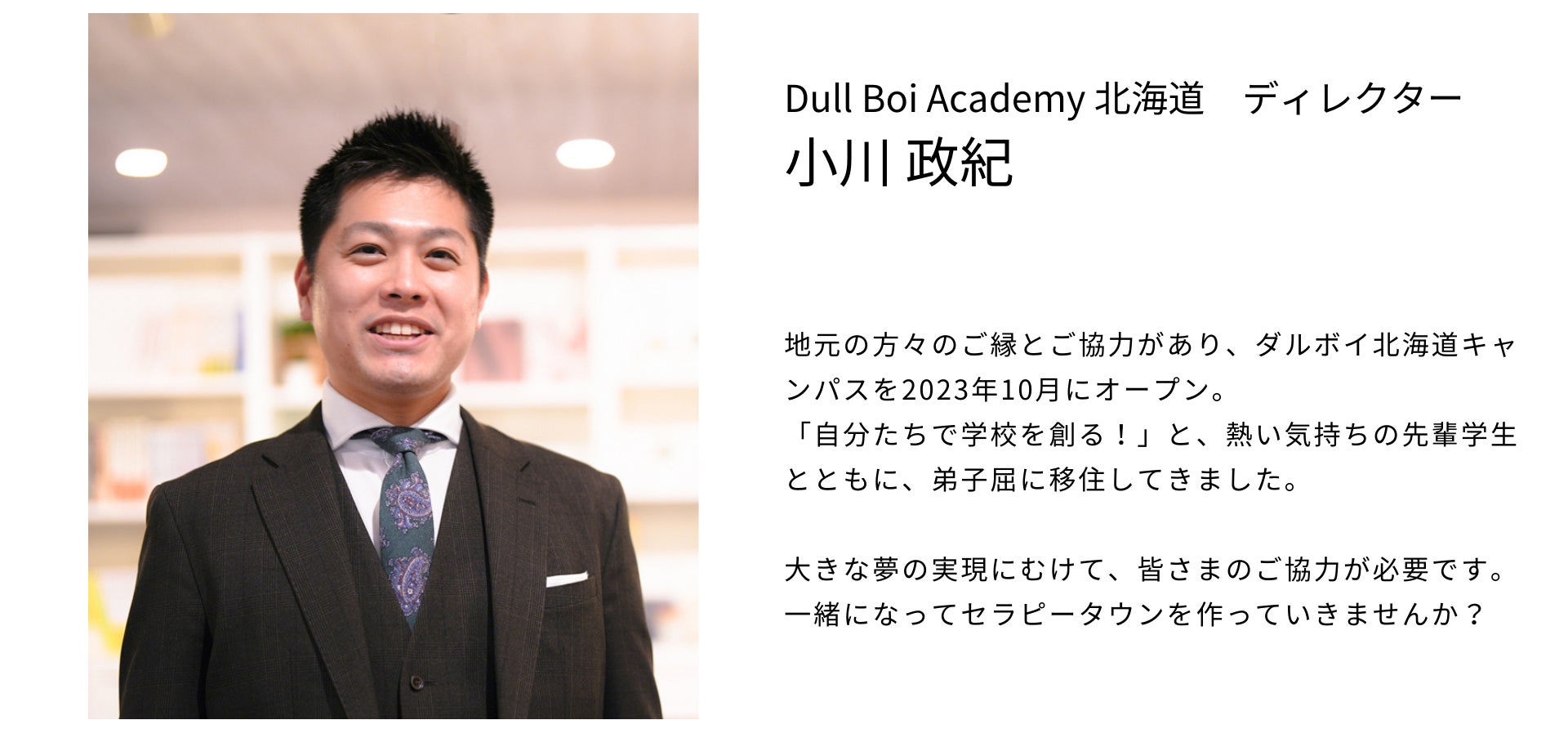 改めまして、私たちは、今の教育システムに合わない若者をそのまま受け入れるために「人間育成の総合塾」として設立した私塾「Dull Boi Academy(ダルボイ・アカデミー)」です。
