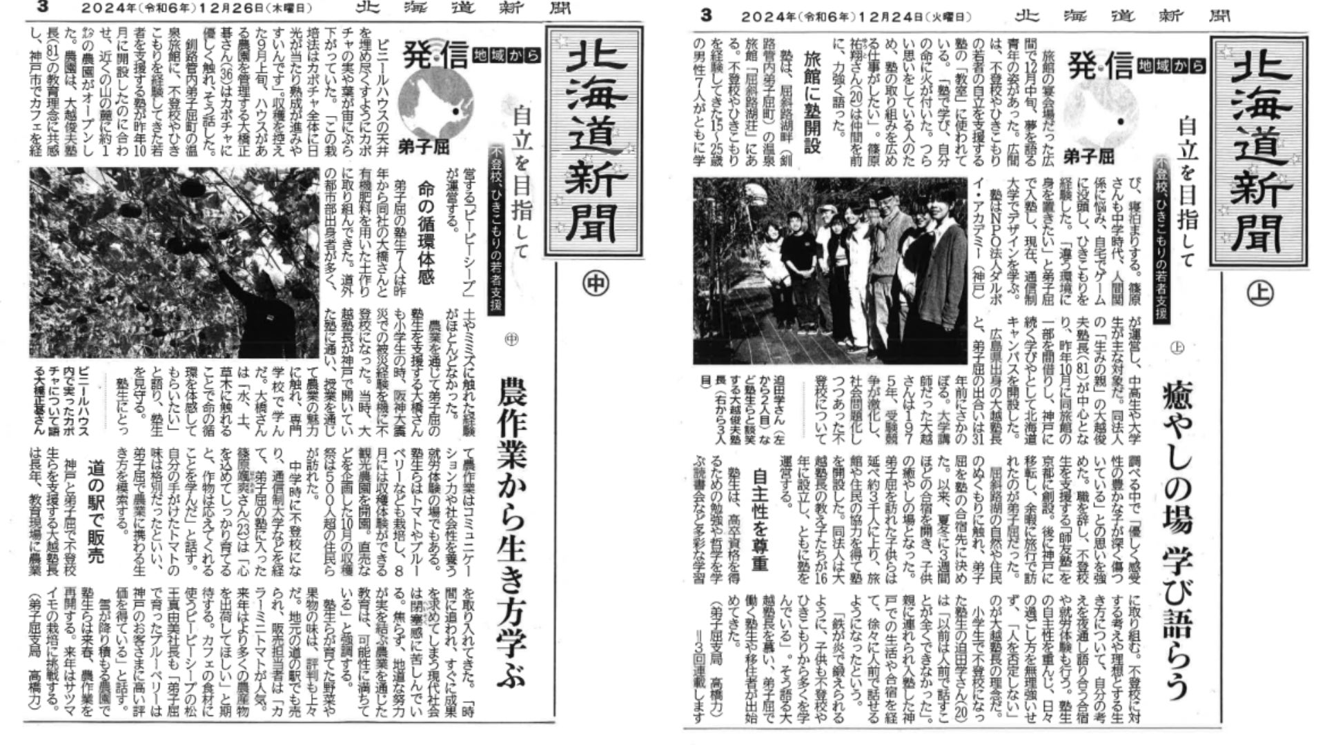 私たちの活動はだんだんと広まっており、北海道新聞にも3日間連載記事として掲載されました。