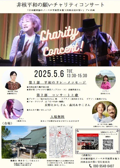 5/6(火・祝)岡本寺にてチャリティコンサート開催!