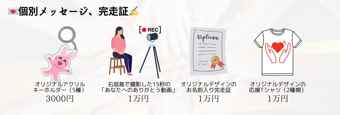・個別メッセージ・完走証・・・お名前を入れた特別なメッセージや記念品をご用意✨