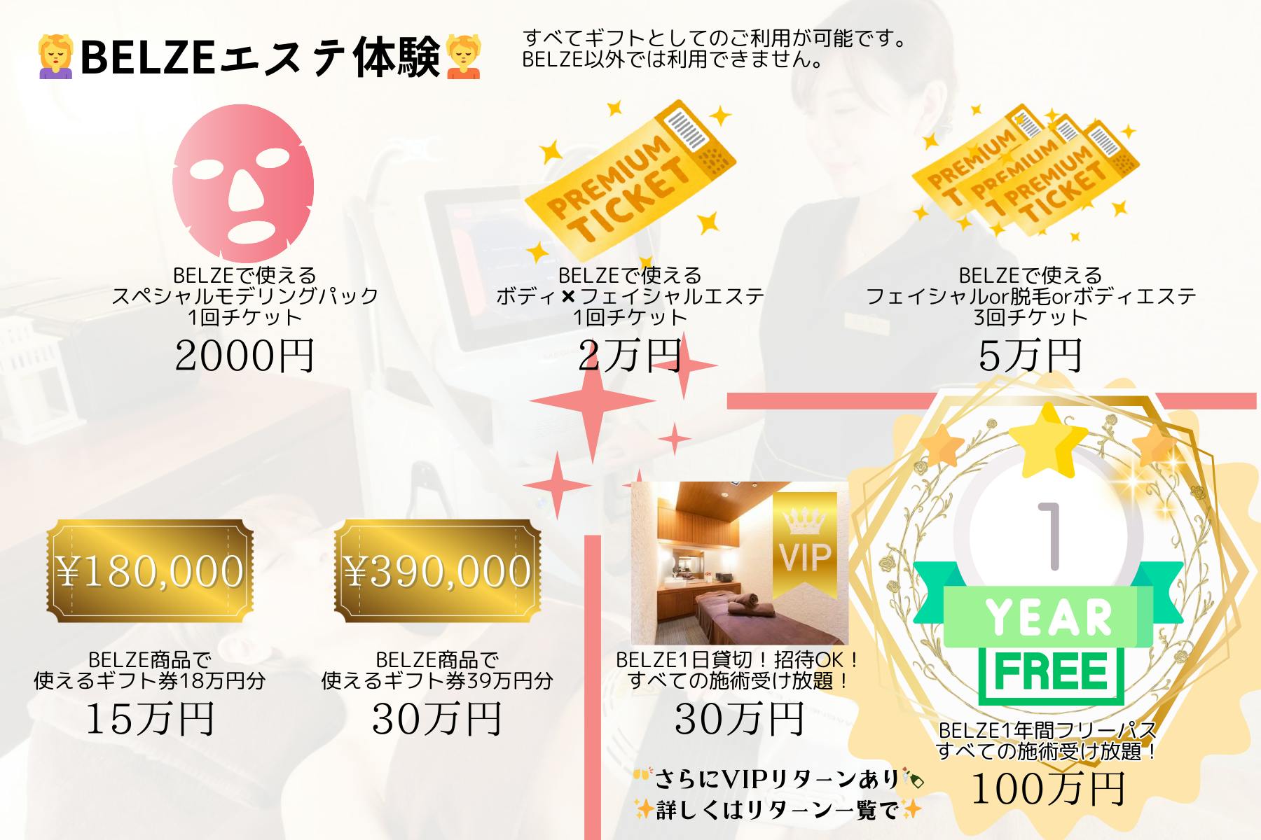 BELZEのエステ体験をご用意しました✨すべて、プレゼント用でのご支援も可能です。