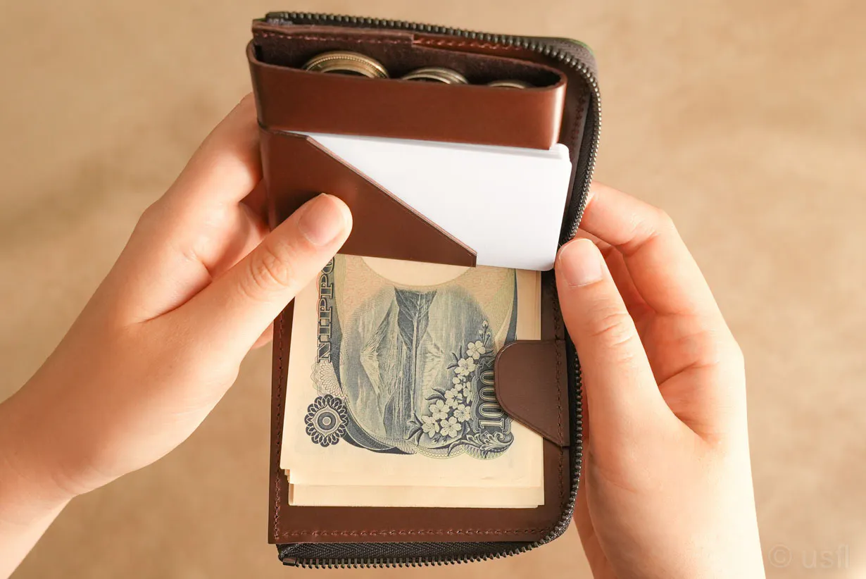 小さい財布において、サイズと収納量のバランスが課題でした。