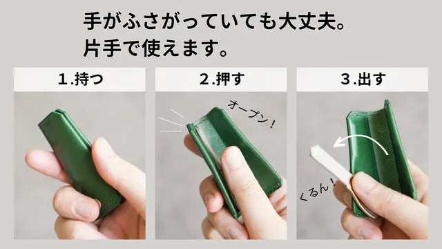 コンパクト財布の様々な課題を解決し、「圧倒的な使いやすさ」を実現した革新的な財布です(意匠登録済)。