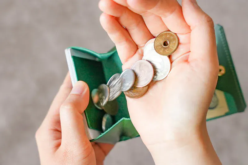 ほぼすべての財布は、フタによって小銭が隠れて見えにくく、出し入れのたびに「フタを操作する」手間がかかります。深くてせまいポケットは小銭の使いにくさを感じます。
