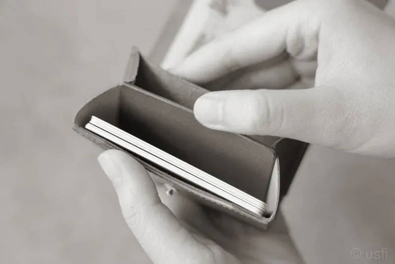 mini Sは、裏面を磨いてなめらかにし、スムーズにお札を出し入れできるようにしています。技術も時間も必要ですが、心地よく使えるように作り込んでいます。