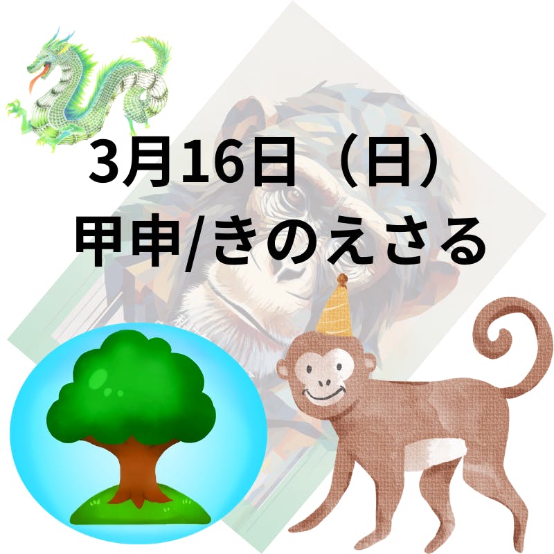 そして今日は60干支では甲申の日です!漢字似てると思いませんか?甲 と 申、突き抜ける方が十二支の猿ですよ!