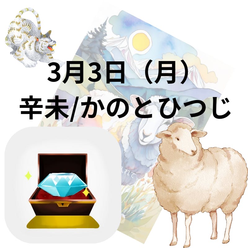 お雛様ですね!実は奇数が重なる日は元旦、そして今日のひな祭り、桃の節句、5月5日のこどもの日、端午の節句、7月7日七夕、星まつり、そして9月9日重陽の日、菊の節句、これで五節句なんですよね。そして今日は60干支では辛未の日です!辛は金の女性氣質または陰の氣質「宝石」、そして十二支では未の日なんですね基本氣質が宝石の人は プライドが高く気品があり、見た目も麗しく華やかなことが特徴です。磨かれることが人生の大切なテーマとなります。 客観的に物事が見え、芯が強く行動力がありますが、神経質でデリケート。完璧主義で責任感から自分を強く責めてしまう傾向もあります。 個性を伸ばしていける人間関係、環境を得ることが成功の鍵となります。そして未の日生まれの人の特徴は円満主義。心が狭く迷いを生じがち。よく判断し行動に移せば万事巧く進む。では辛未生まれの人の特徴は。。。。*こちらは支援者限定公開の記事でご案内しますね!*支援者限定公開の記事では60干支ことだまセラピーカードの全画像が毎日1枚づつ公開されています。カードが届くまでワクワクしながらお楽しみくださいね基本氣質や氣質診断ってなんだろうと思った方は風水ライフデザインスクール公式HPへ自分の基本氣質が知りたくなった方は こちらのページで生年月日を入れるとわかりますそもそも氣質診断って何?と思った方は無料ダウンロード小冊子「自分の取扱説明書〜氣質診断のすすめ」を読んでくださいね! プライドが高く気品があり、見た目も麗しく華やかなことが特徴です。磨かれることが人生の大切なテーマとなります。 客観的に物事が見え、芯が強く行動力がありますが、神経質でデリケート。完璧主義で責任感から自分を強く責めてしまう傾向もあります。 個性を伸ばしていける人間関係、環境を得ることが成功の鍵となります。