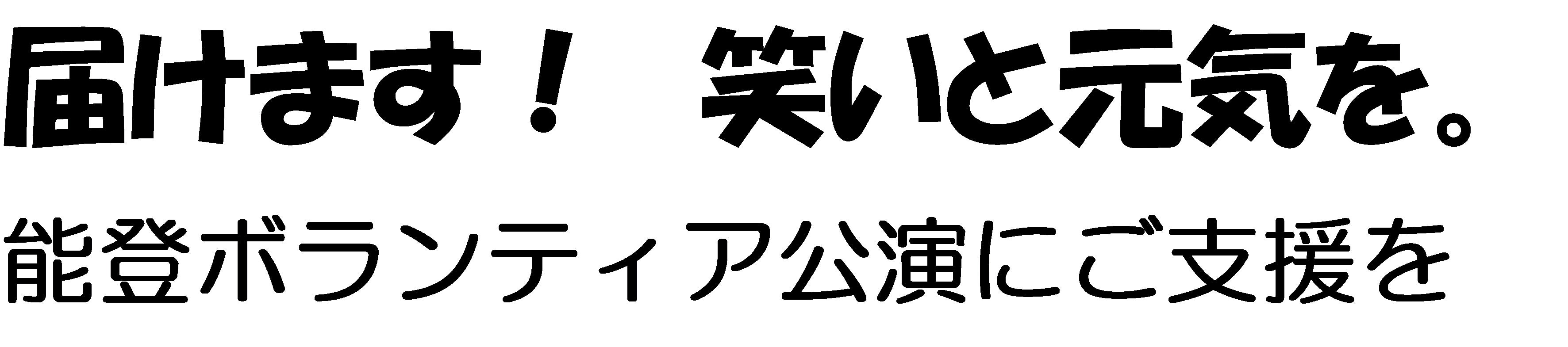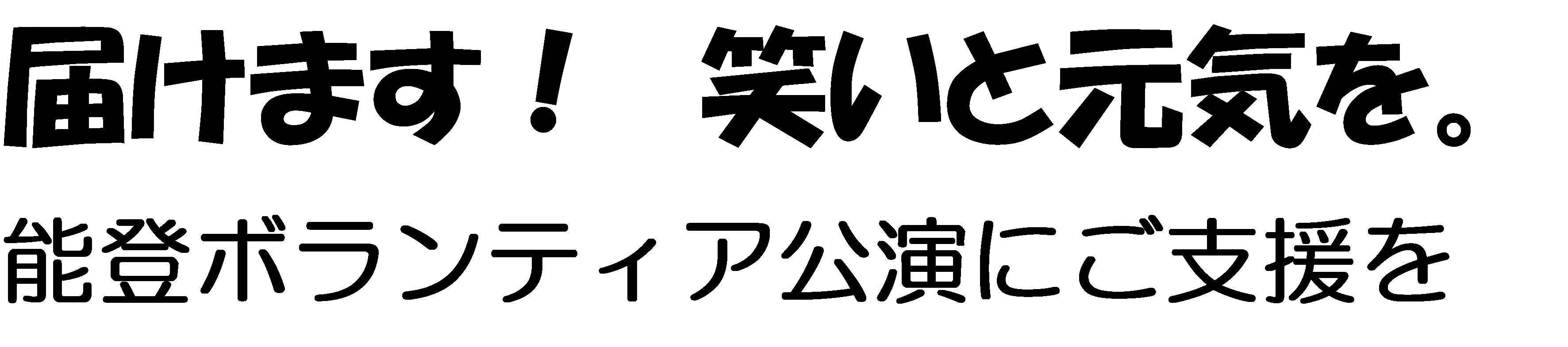 能登に今こそ笑いが必要です。笑いと元気を届けます。しかし、私たちだけではできません。皆さんのご支援こそがそれを実現してくれます。