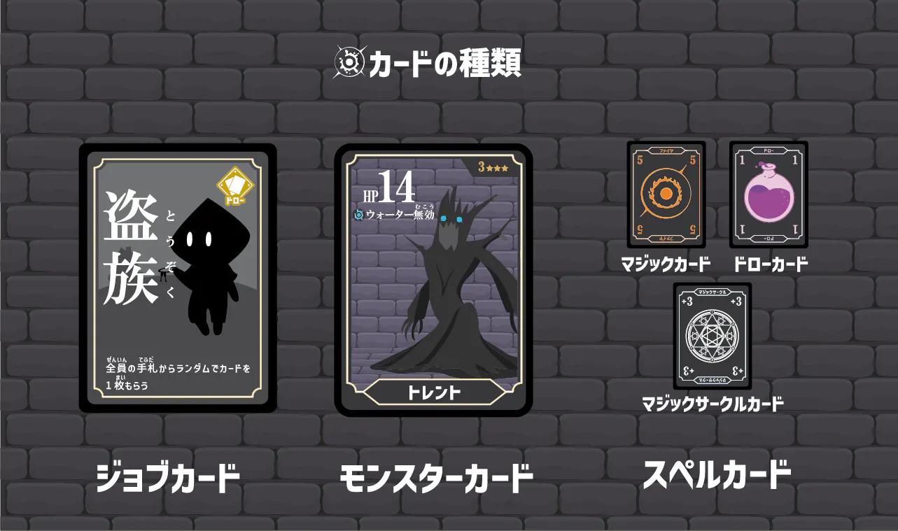 カードの種類は3種類「ジョブカード」「モンスターカード」「マジックカード」を使用します