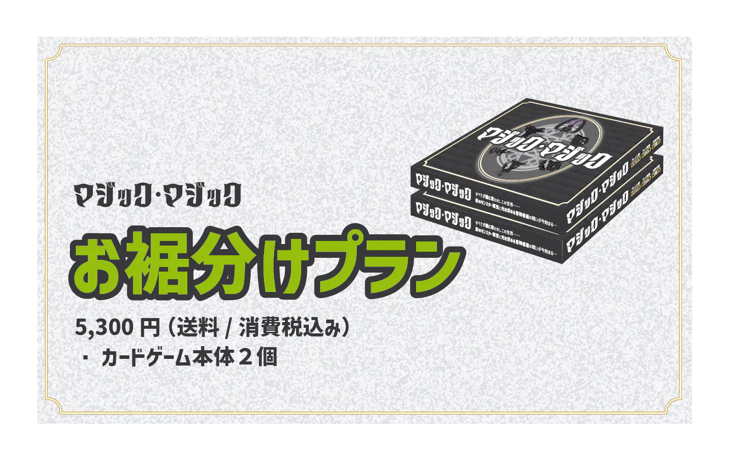 「マジック・マジック」が皆さまの日常に新しい遊びといった価値観を見つけ出せる手助けとなることを願っています。今回カードゲームを制作するといった新しい取り組みですが、この私達の新しい挑戦をぜひ応援してください。皆さまのご支援が、このプロジェクトの成功を支える力になります。どうぞよろしくお願いいたします!