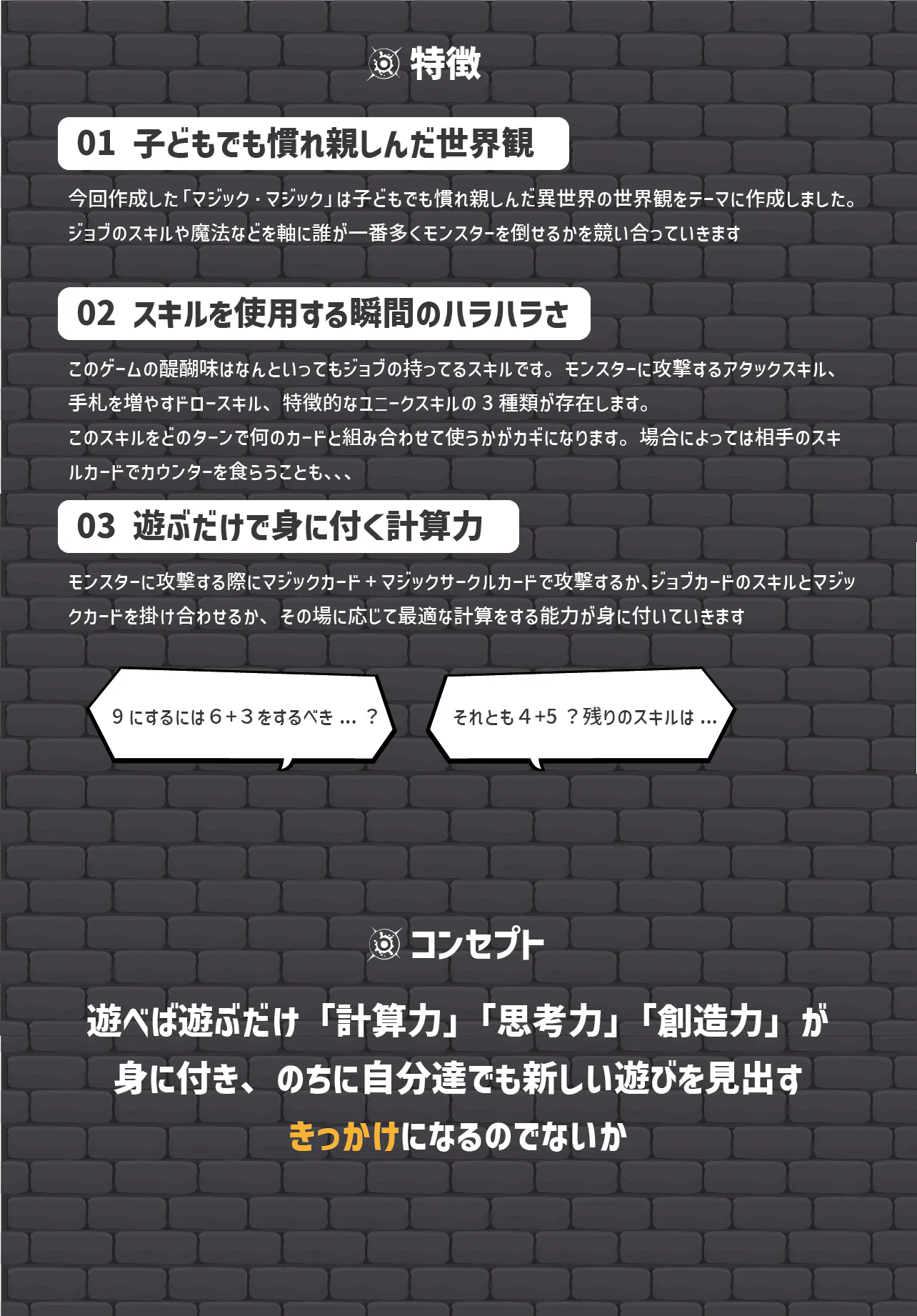 今回制作した遊びはマジック・マジックというカードゲームですが、この遊びを通して遊びの新しい可能性を見出してくれたら嬉しいです。