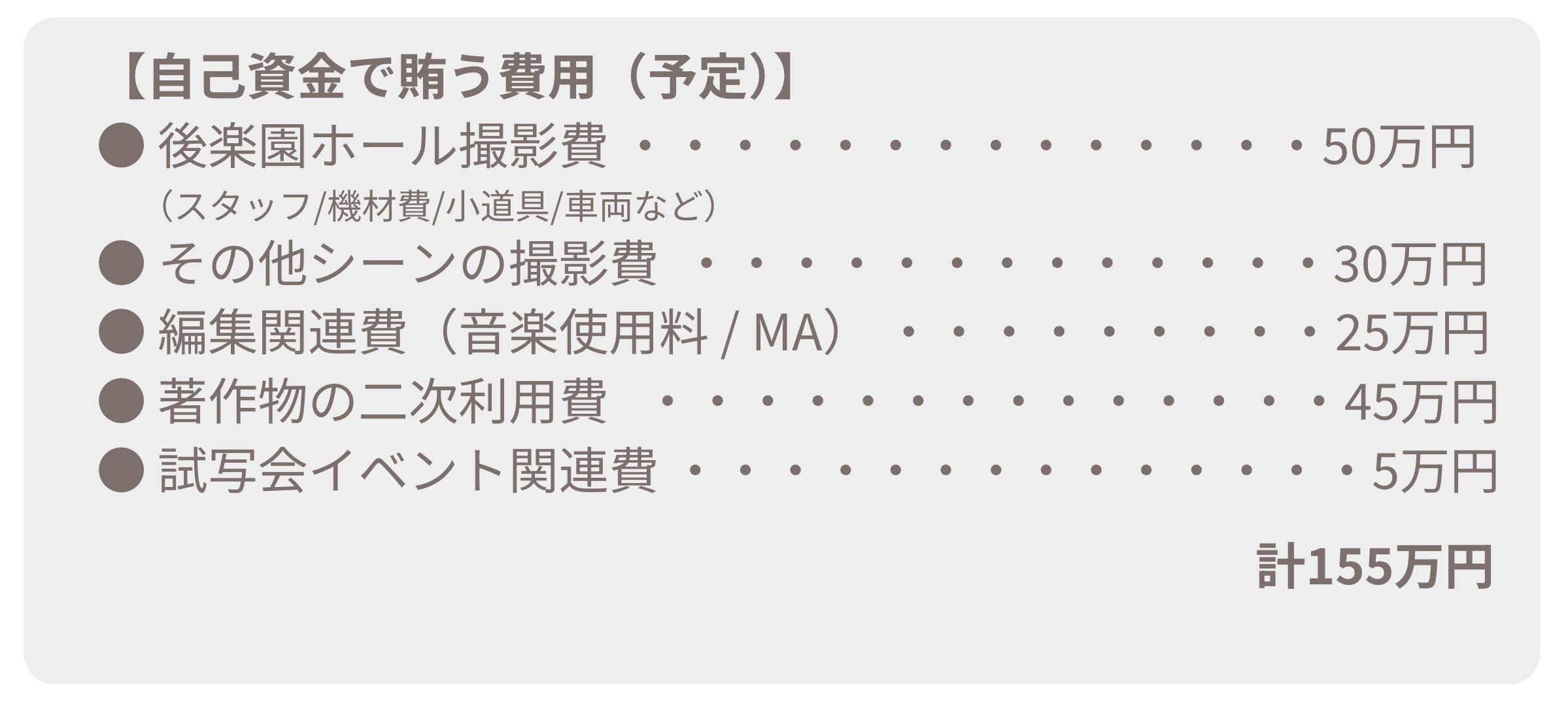 この撮影を実施するにあたり、クラウドファンディングでのご支援を募らせていただきます。(※後楽園ホール以外の撮影費や編集関連費などは、自己資金で賄います)