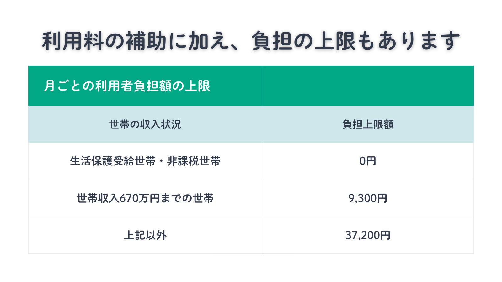 利用の手続きには、役所を通した申請が必要なため、手間はかかるものの、生活保護受給世帯や非課税世帯であれば、利用料は0円、それ以外の世帯であっても、利用料の9割が国や自治体により負担され、利用者の負担は1割となり、1日の利用料が1万円だった場合、実際の負担額は千円となります。