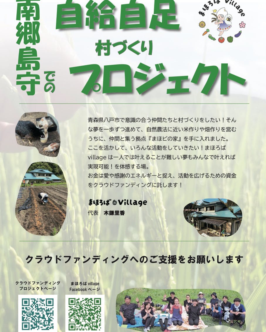 挑戦中の、『南郷島守で目指す!より良い未来を夢見る仲間と作る自給自足の村作りプロジェクト!!』