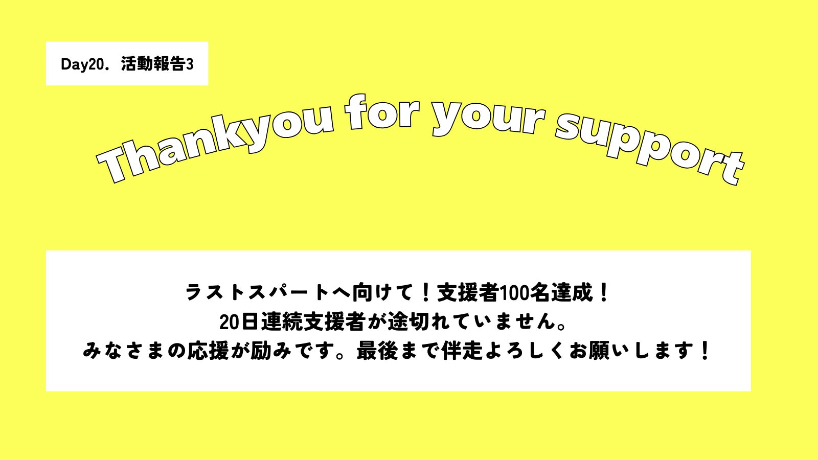 ついに活動20日目。ラストスパートに差し掛かってきました。