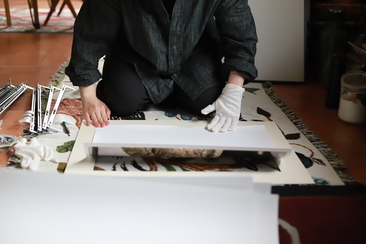 先週末は親友に家に来てもらい、額装作業を。