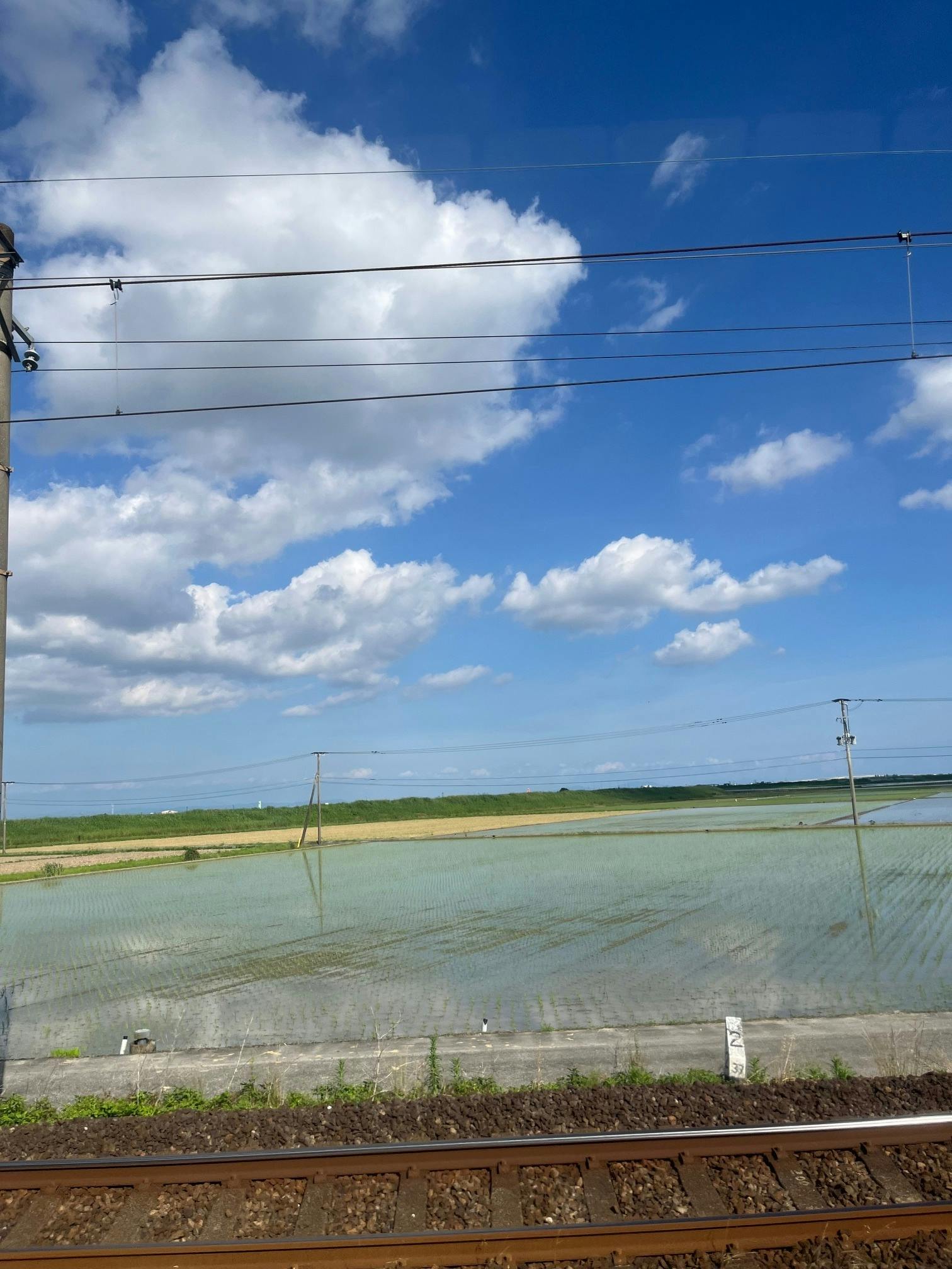 特急電車と新幹線を乗り継いで広島へ。佐賀を過ぎるあたりの美しい水田風景です。佐世保で暮らしていた時は水田が家の近くにあり、季節や時間で表情を変え、水鏡となって空を反射する水田を眺めるのが大好きでした。癒しの移動時間です。
