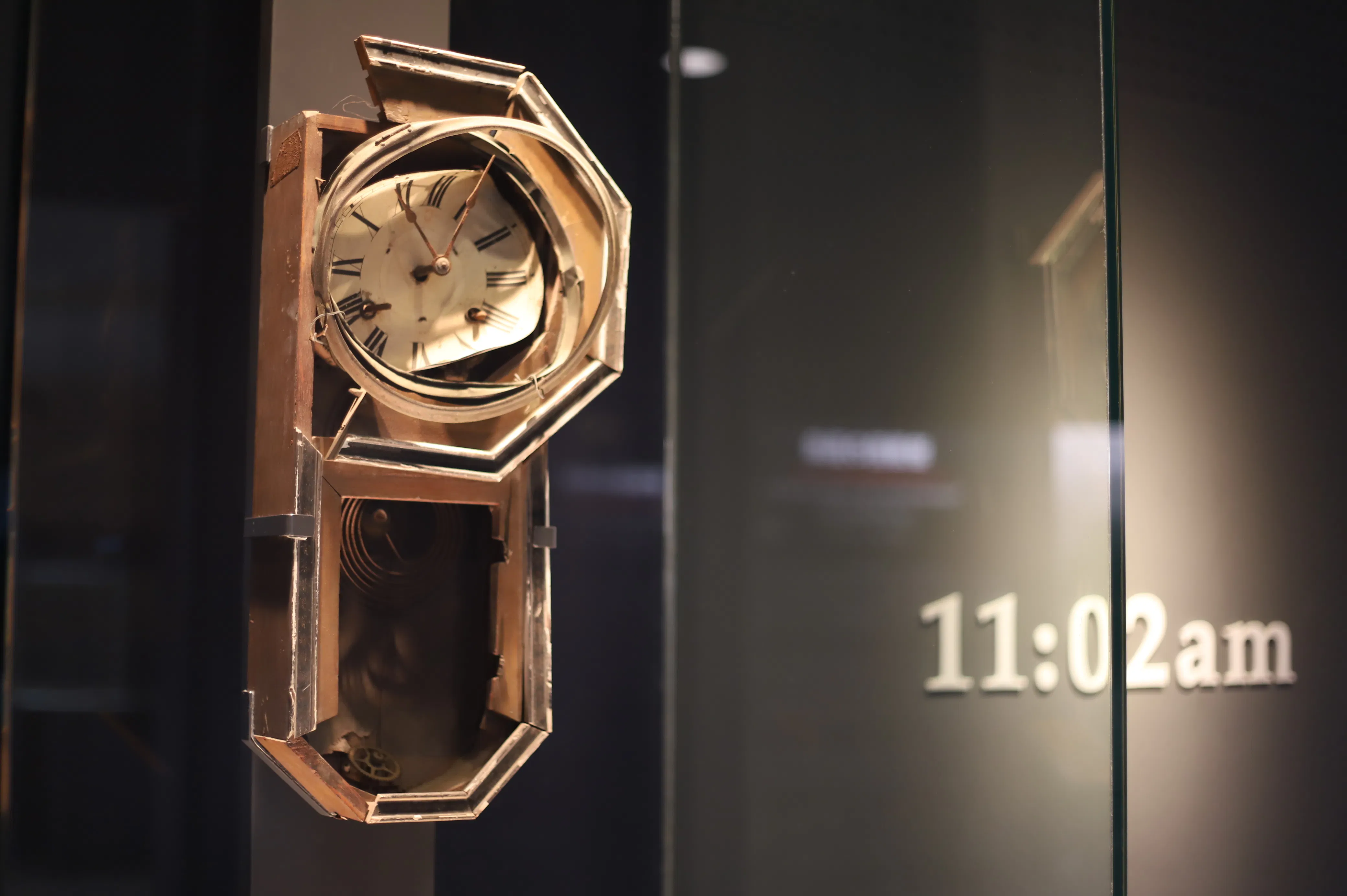 原爆資料館に展示されている11時2分で止まった時計のレプリカ(長崎市)