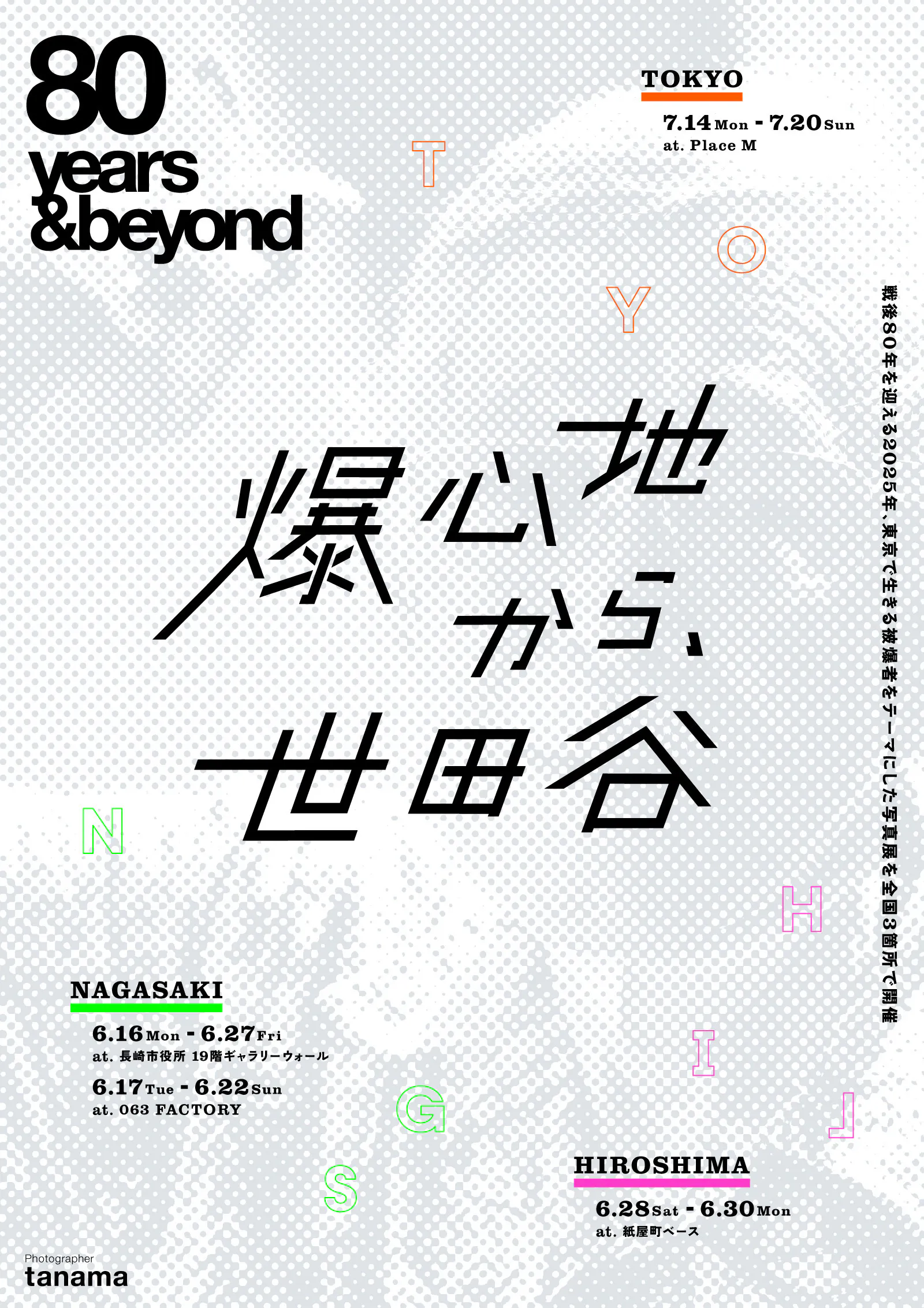 これまでに「爆心地から、世田谷」というタイトルで2013年、2015年、2020年(以上東京)、2023年(長崎)と4度の個展を開いてきました。今年は自身初となる「長崎・広島・東京の3ヶ所での開催」を企画しています。