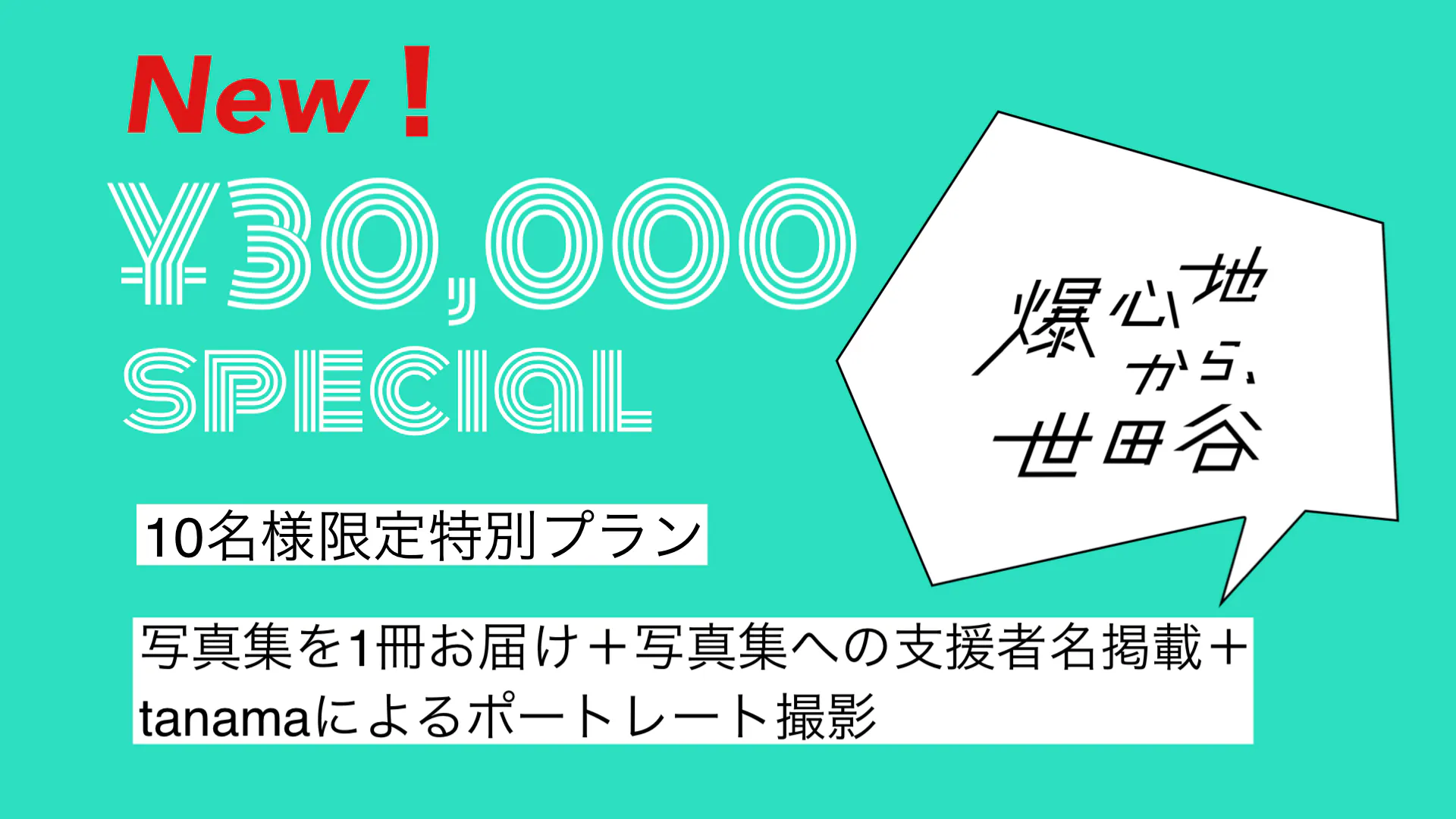 tanama初の写真集「80years & beyond 爆心地から、世田谷」の巻末「サポーター一覧」にお名前を掲載させていただき、完成後の書籍を1冊お届けします。さらにtanamaがポートレートを撮影いたします。