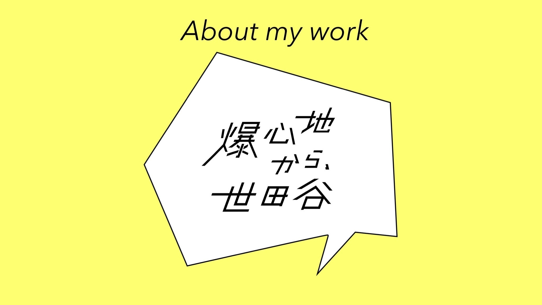 「爆心地から、世田谷」には、「被爆者」と名前を付けられてしまった「普通」の人たちの「普通」の日常をフルカラーで生き生きと紹介することで、彼らが受けた傷や抱えてきた葛藤、重ねてきた長い長い時間と、語りつくせない物語を鑑賞者の目で自由に感じ取ってもらいたいという想いを込めています。