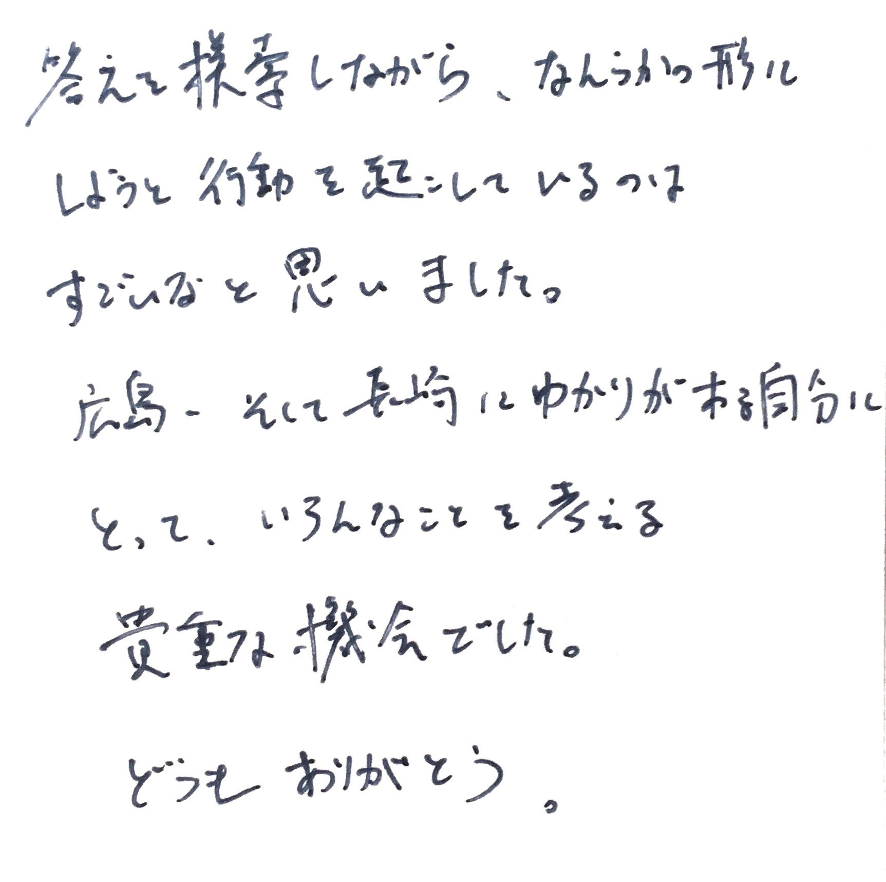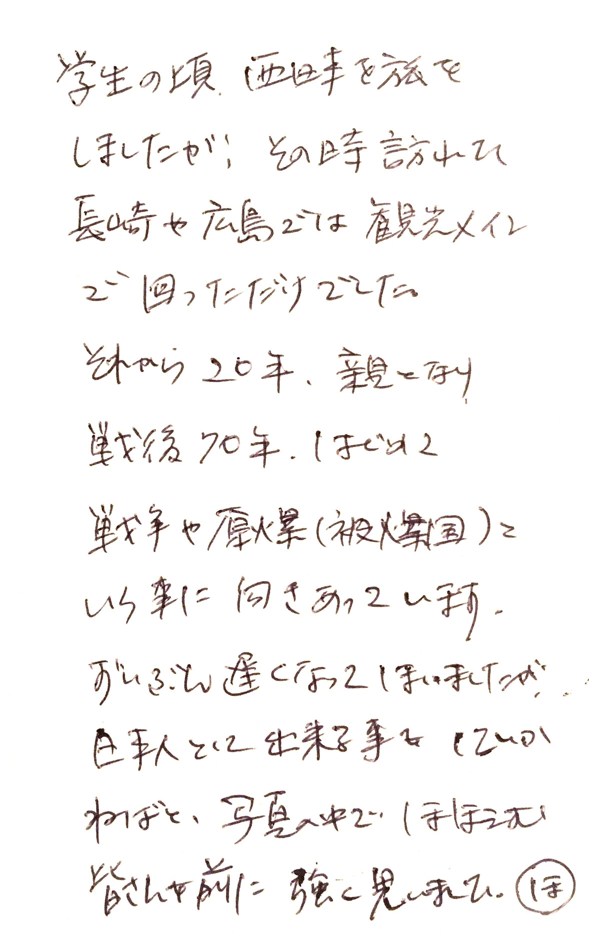 長崎に住んでいたころは、原爆と平和についての関心は人並みにあったものの、誰かの先頭に立って署名活動をしたりすることもなく、「高校生平和大使」のような有志の方々を眩しく、「立派だなぁ」と眺めている側の人間でした。