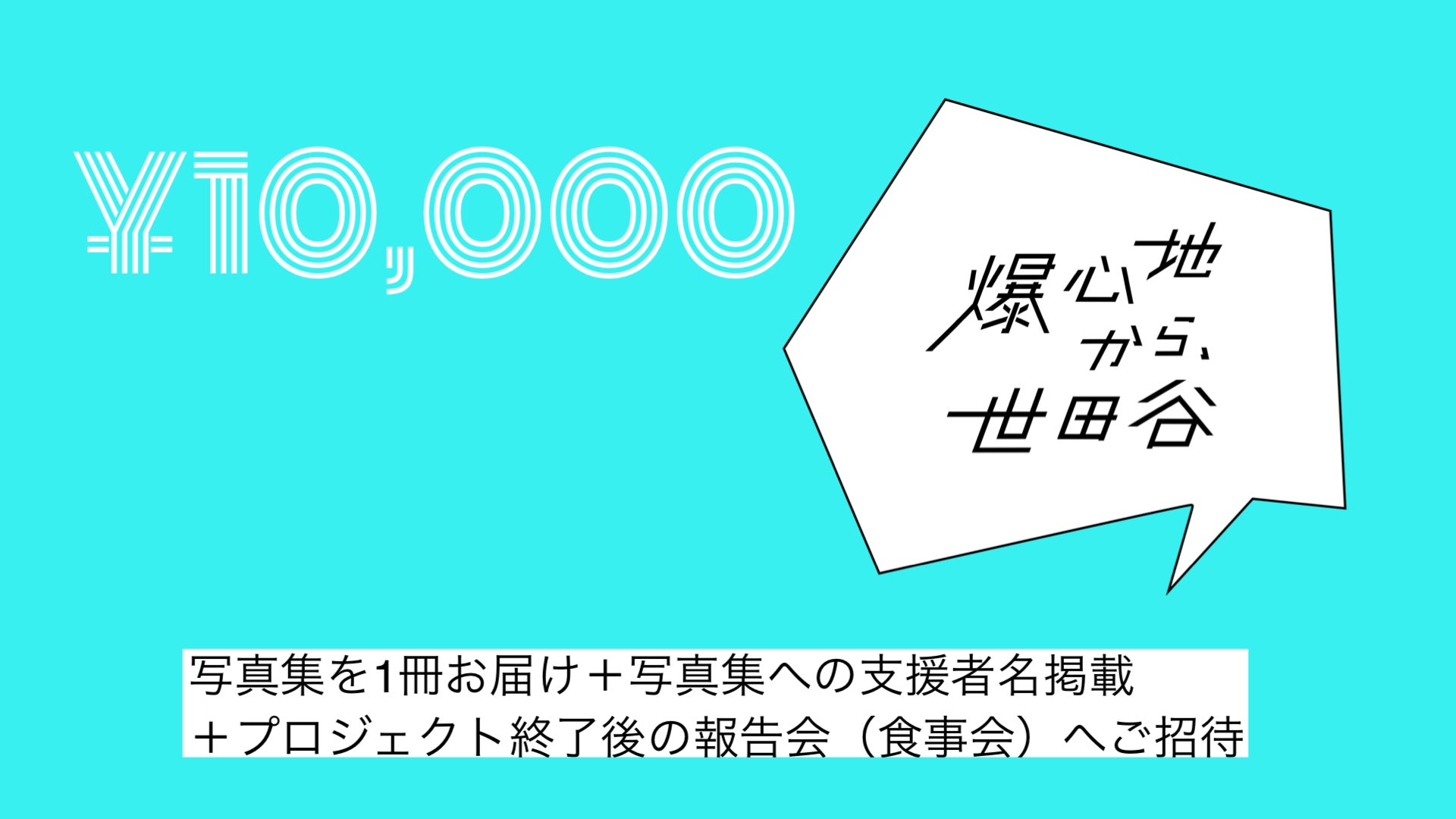 「80years & beyond 爆心地から、世田谷」の巻末「サポーター一覧」にお名前を掲載させていただき、完成後の書籍を1冊お届けします。 さらに、長崎・広島・東京の3か所での個展が終了したのち、プロジェクトのご報告と御礼を兼ねた小宴にご招待します。
