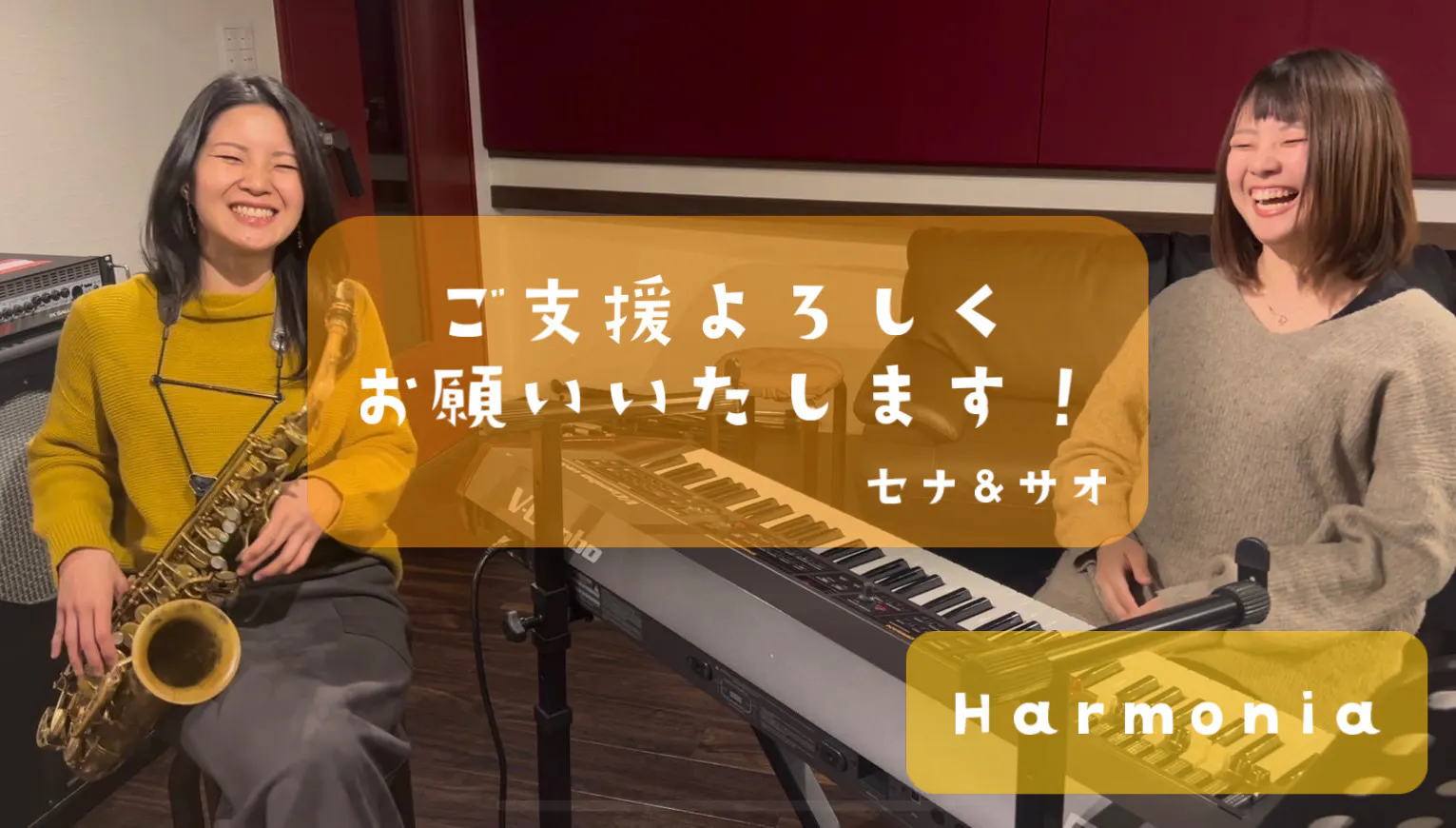 そんな風に、応援してくださる皆様の生活に少しでも色を添えることができればと思った時に、私たちの音楽を形に残そうと決めました。これまでのサックス、ピアノのduo編成に、ベース、ドラムを迎えバンド編成にて、更にバージョンアップしたHarmoniaの新しいサウンドを楽しんでいただきたいです。