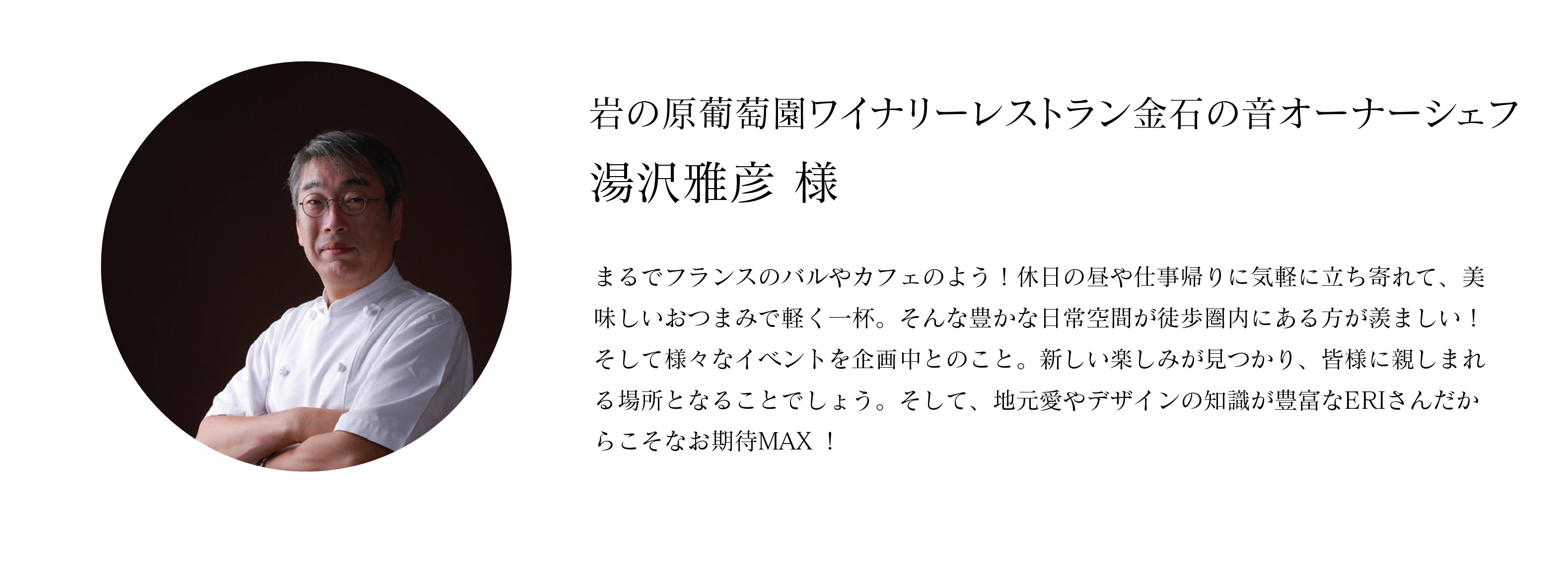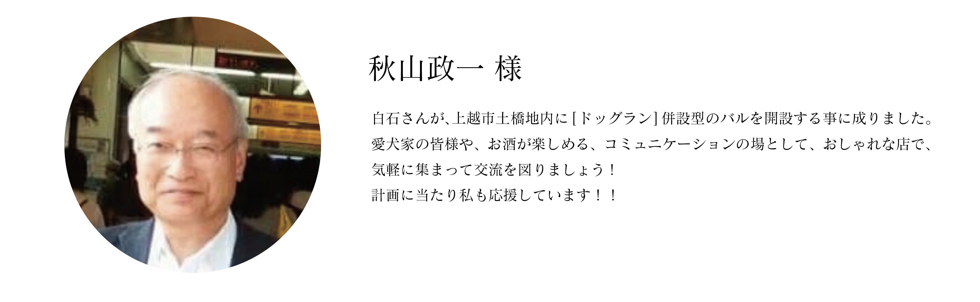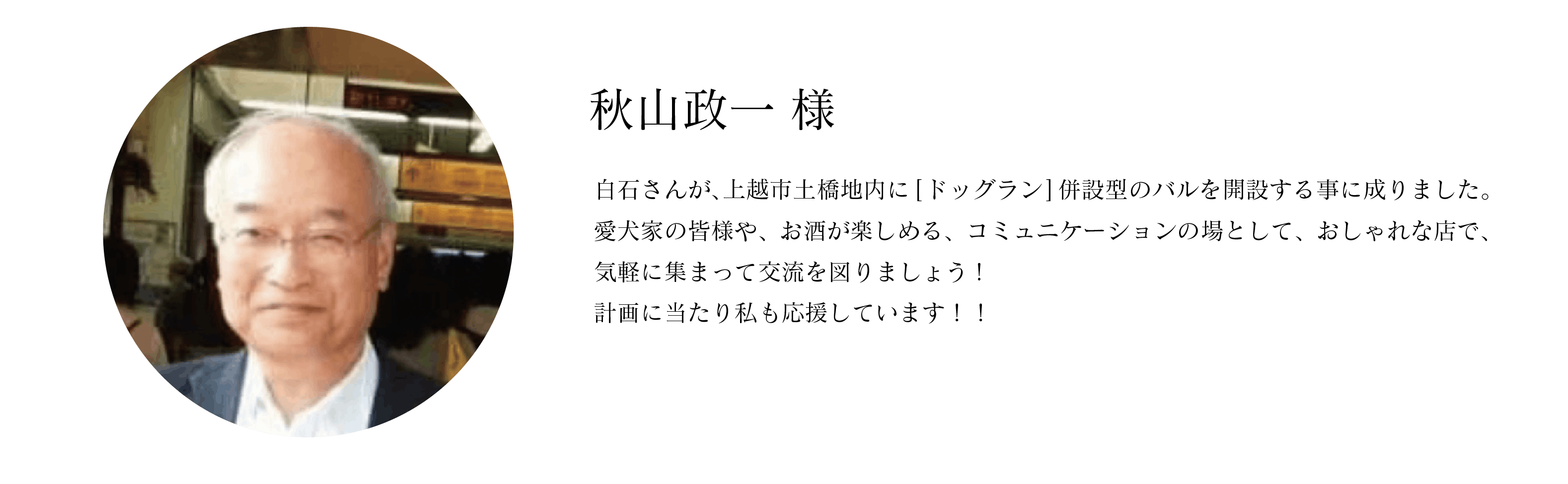 地元の人はもちろん、犬が好きな人、おいしいお酒が好きな人、いろんな人たちが自然と集まり、繋がれる場所にしていきたいと思っています。