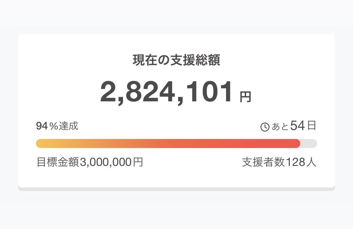 おかげさまで、開始4日目にして目標の93%を突破、もうすぐ300万円に到達しそうです。