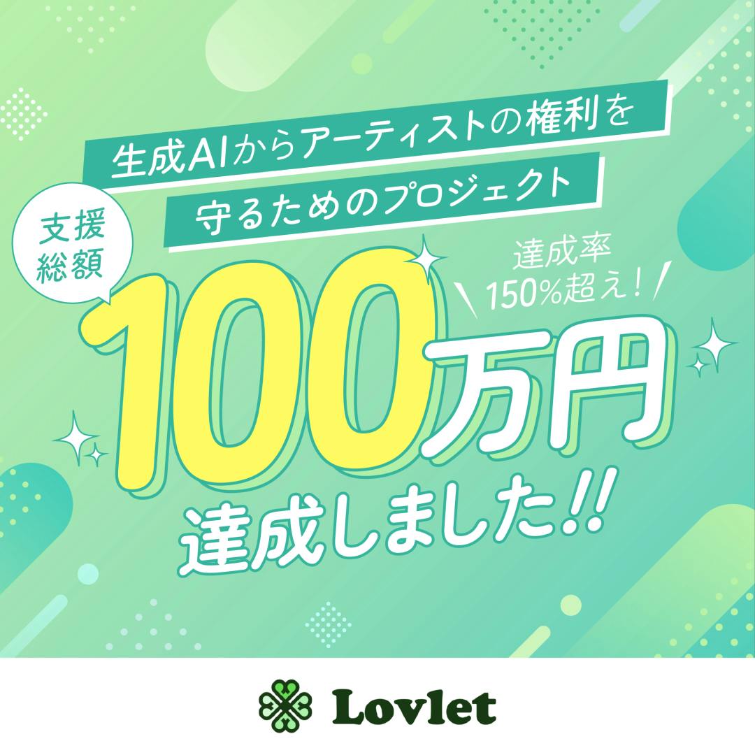 この度は、クラウドファンディング「アーティスト・クリエイターの権利を保護する学術研究プロジェクト」に多くのご支援を賜り、誠にありがとうございました。本クラウドファンディングは2025年3月13日より募集を開始し、79日間で316名の方々から1,710,000円のご支援をいただき、目標金額の171%を達成することができました。皆さまの温かいご支援に、心より御礼申し上げます。支援金の使途について今回のクラウドファンディングは、本課題に対する研究費の募集ではなく、多くの方が安心して作品を公開できる場を継続的に提供するための運用費の調達を一番の目的としていました。これは、研究者各自が獲得している科研費などの研究費は、研究以外の用途には使用できないことによります。そのため、今回いただいたご支援金は、目標金額を超えた分も含め、全てプラットフォームの運用費に充てさせていただきます。私たちのサービスでは、すべてのユーザー(未ログインの閲覧者を含む)に対して、投稿されたすべてのオリジナル画像について、アクセスされるたびに署名付きURLを毎回発行しています。これらの仕組みにより、機械による画像の収集・解析を困難にしながら、人間の閲覧者にとっては快適な閲覧体験を提供しています。運用には決して安価でないコストがかかりますが、皆さまからのご支援金を大切に活用し、5年、10年と継続的な運営を目指してまいります。リターン実施完了のお知らせご支援への感謝として、掲載をご希望された支援者様のお名前を、特設ページにて掲載させていただいております。リンク先をご確認のうえ、お名前の誤記や記載漏れ等がございましたら、お手数ですが、CAMPFIREのメッセージ機能よりご連絡ください。URL: https://lovlet.jp/supportersクラウドファンディング支援者限定バッジの付与対象者は、ログイン後「設定」ページにて、バッジの表示・非表示を選択いただけるようになっています。対象者で設定項目が表示されない場合も、同様にメッセージ機能よりご連絡ください。URL: https://lovlet.jp/settings最後に今後も、長期的な運用と、技術の進展や状況に応じた適切なアップデートを継続していけるよう努めてまいります。また、サービス内の設定ページから有料会員(月額550円から)としてご登録いただくことで、今後の運用を支える大きな助けとなります。もしご賛同いただけましたら、ぜひこちらからのご支援もご検討いただけますと幸いです。長期的な課題解決に向けて尽力してまいりますので、今後ともどうぞよろしくお願いいたします。Lovletプロジェクトメンバー一同