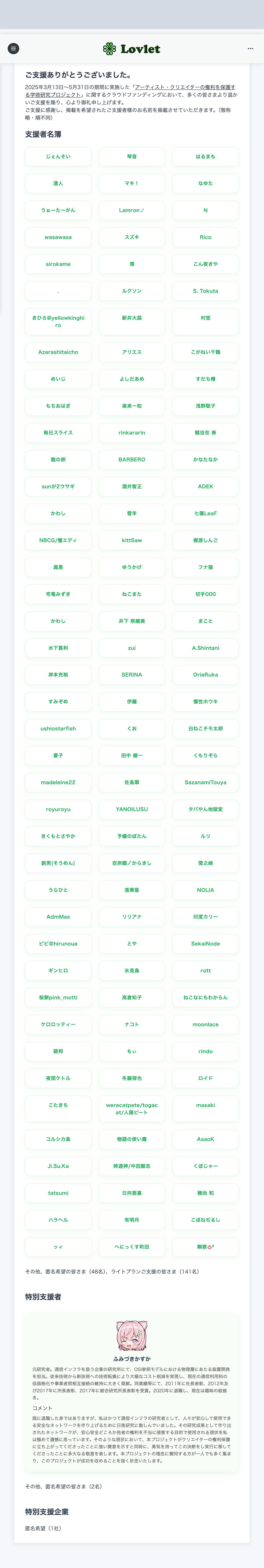 URL: https://lovlet.jp/supporters