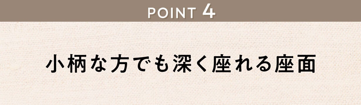 座面の奥行が深すぎる椅子に小柄な方が座ると、椅子の背もたれに背中が届かず、そのまま座ると後継姿勢になってしまいます。これを防ぐために、支える椅子は座面奥行きを約40cmというコンパクトサイズにしました。