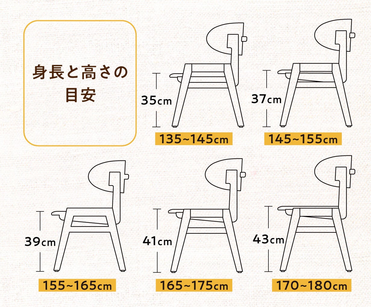 座面の高さが合わないと、足が床につかず不安定になり、食事に集中できません。