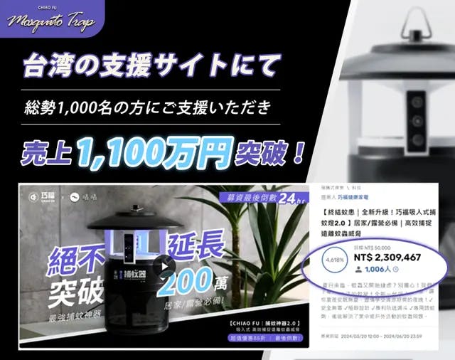 台湾生まれのメーカー「CHIAO FU」は1986年創立で、モーター製造を専門とし、扇風機、蚊取り器、オーブン、マッサージ器などのプロダクトを手がけています。「吸引式蚊取り器」の領域では20年以上の研究開発を重ね、多くの国際的発明賞を受賞している、台湾における主要な蚊取り器メーカーの一つとなっております。