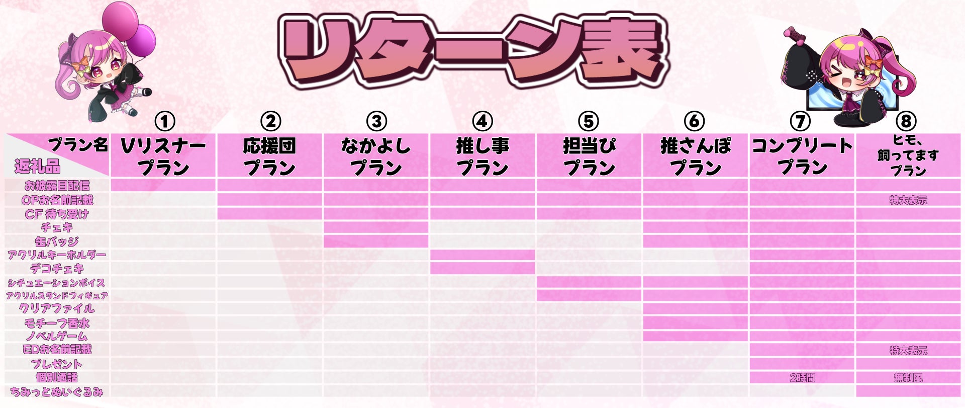 (OP、EDでの名前出しなども無し純粋な応援プラン。メッセージと先行お披露目配信ご招待)