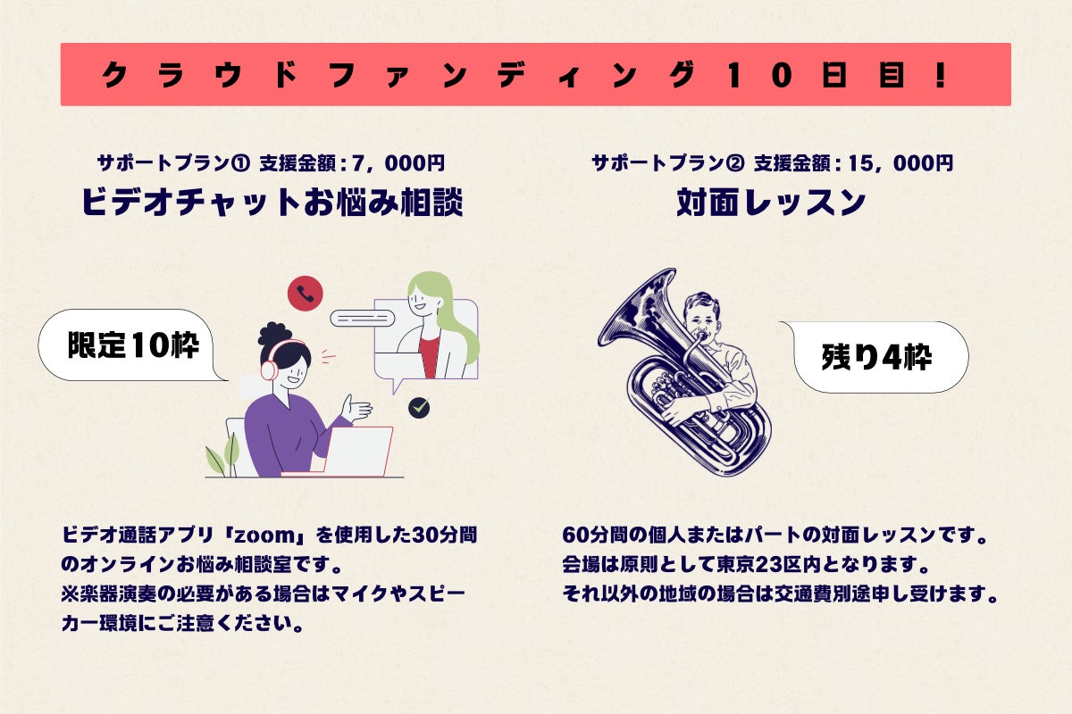 オンラインで30分間、Ueno Bass Clefのメンバーに楽器の悩みを相談できるプランです。