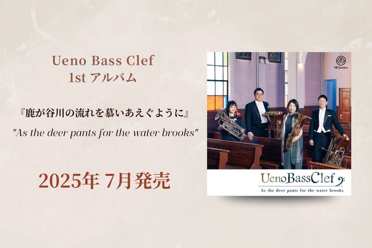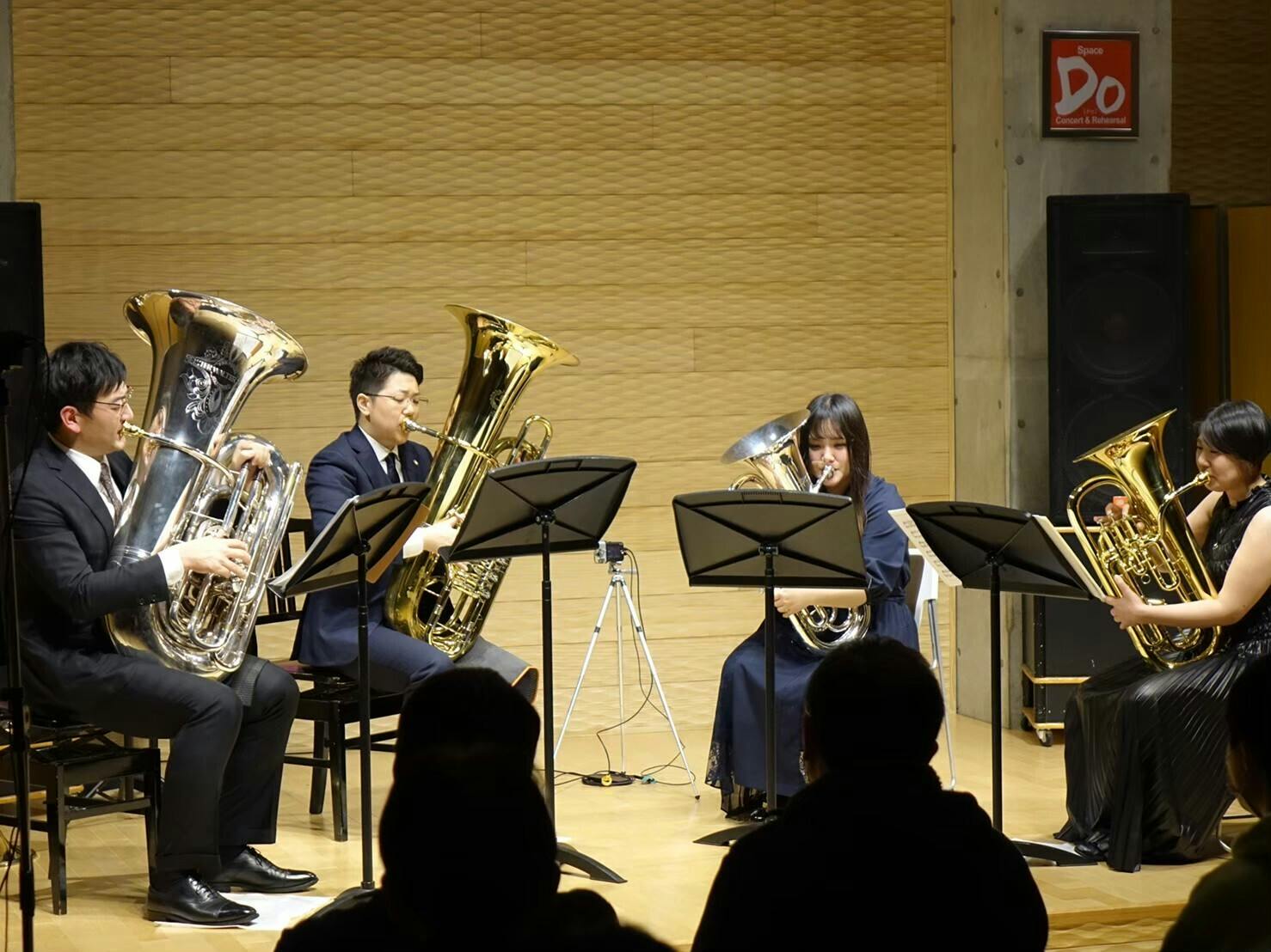 私たち Ueno Bass Clef は、ユーフォニアム2名・テューバ2名の編成で活動しています。この編成は吹奏楽団におけるユーフォニアム・テューバパートの基本的な構成と同じであり、多くの愛好家にとって親しみやすく、取り組みやすい形となっています。